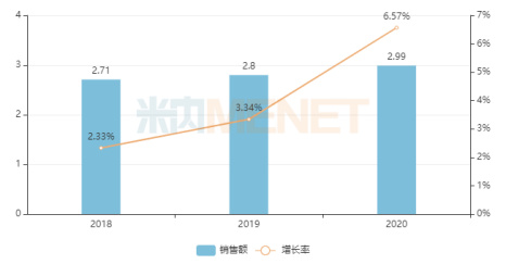 最近三年灵芝/灵芝孢子类产品的销售情况(单位:亿元)来源:米内网中国城市实体药店终端格局