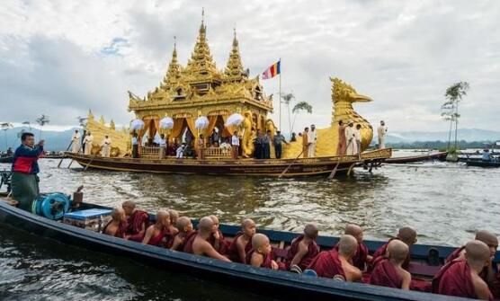 缅甸1333小勐拉0470007彭都奥佛塔是掸邦最著名的寺庙,也是茵莱湖的建筑标志之一。由于庙里珍藏着12世纪的五尊小佛像,所以这里又叫五佛寺。每年的9、10月,因莱湖区都会举行盛大的龙舟迎佛节,为了更多的人们前来朝拜,会用遍体鎏金的凤凰船载着五个金佛游湖,迁移到娘水镇。