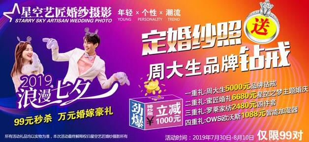 七夕开业活动优惠轰动全城,《星空艺匠婚纱摄影》盛大开业,优惠轰动全城,更多优惠来店详询。